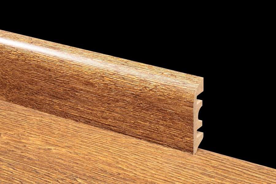 ПЛИНТУС FLOORWAY EUR-814 сделан из MDF, имеет оттенок Коричневый. Этот отделочный элемент придает завершенность напольному покрытию, обрамляя его красивой рамкой. Плинтусные планки хорошо смотрятся с ламинатом, паркетом, линолеумом, другими напольными полотнами, гармонично сочетаются с разными рисунками стен. Цвет ламелей может быть идентичным или контрастировать с цветом напольного полотна. Выбор зависит от общей концепции оформления комнаты.